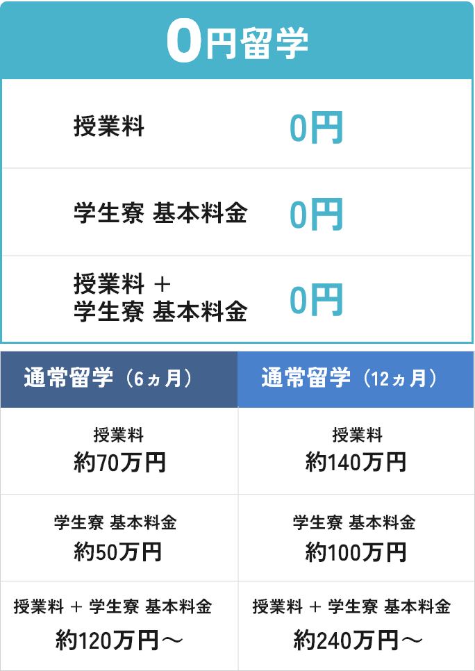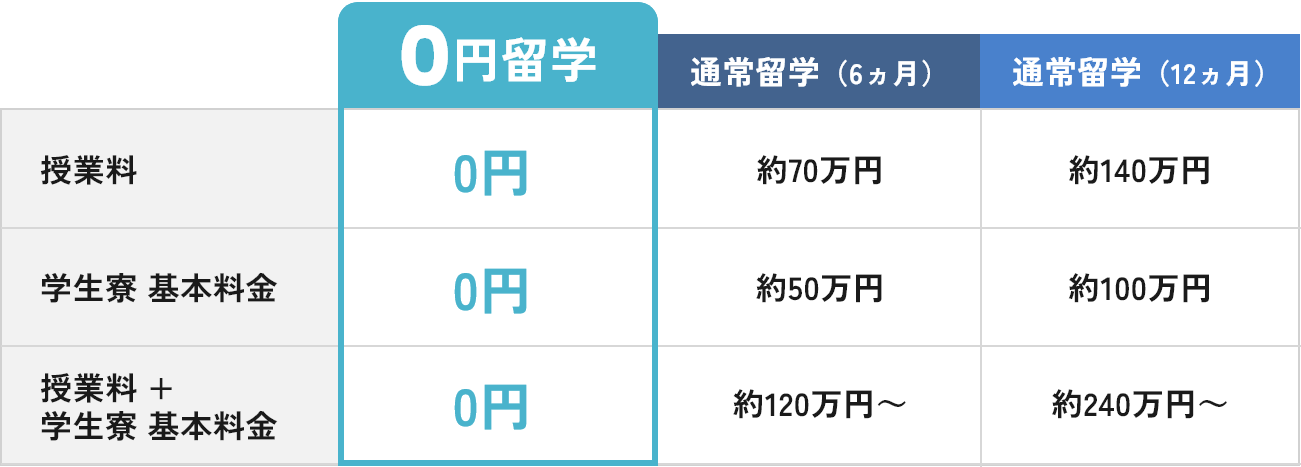 授業料や寮基本料金が無料となる0円留学は、学生にも大きなメリットのある留学プログラムです。