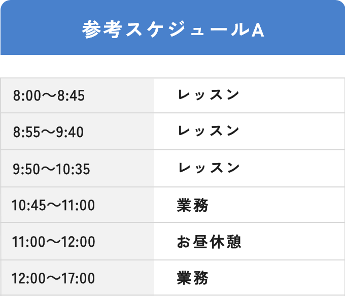 参考スケジュール1. 月曜日から金曜日まで業務+レッスン